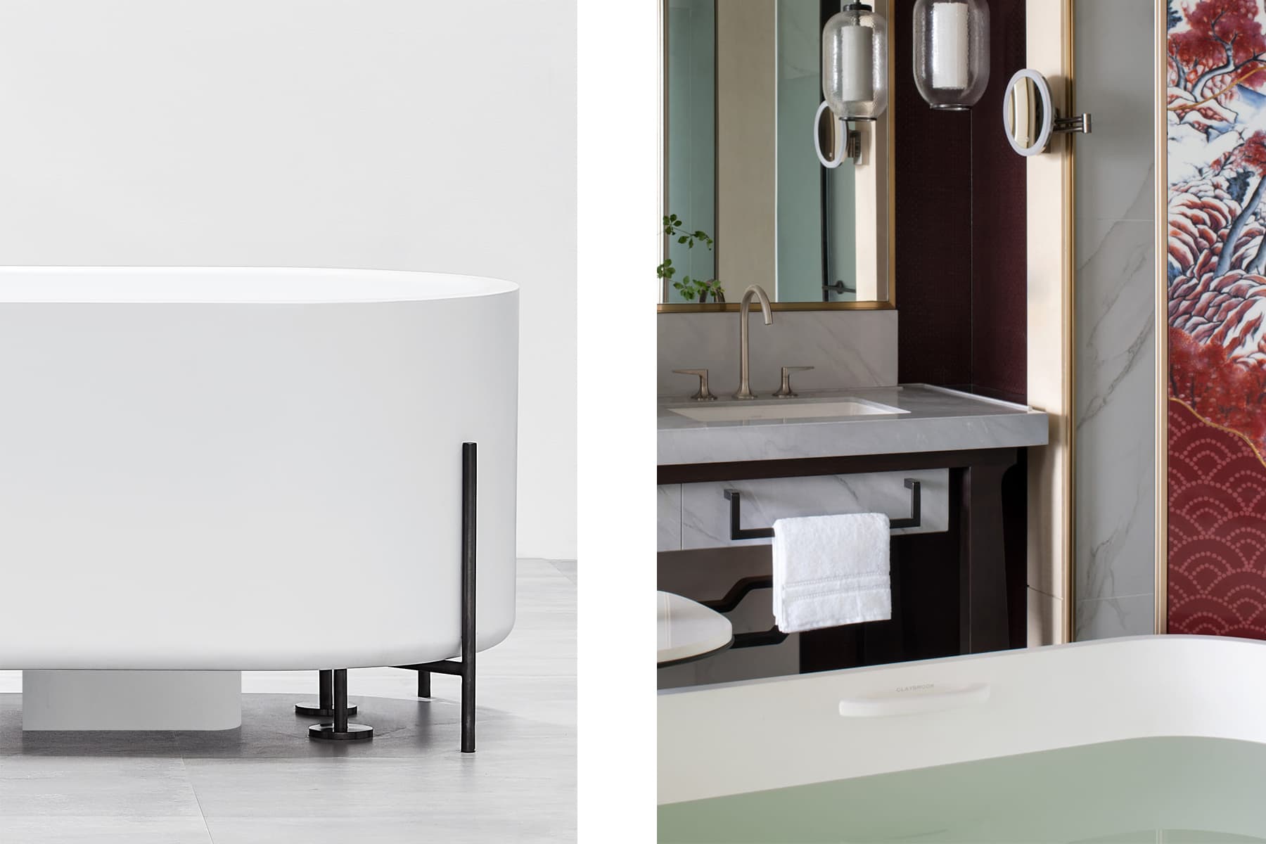 Avalon Collective wanted to create the illusion that the bath was suspended weightlessly above the ground. Our in- house design team rose to the challenge creating an elegant minimalist steel frame to raise the bath off the ground whlist adding an interesting design element to compliment the other hardware in the bathroom.