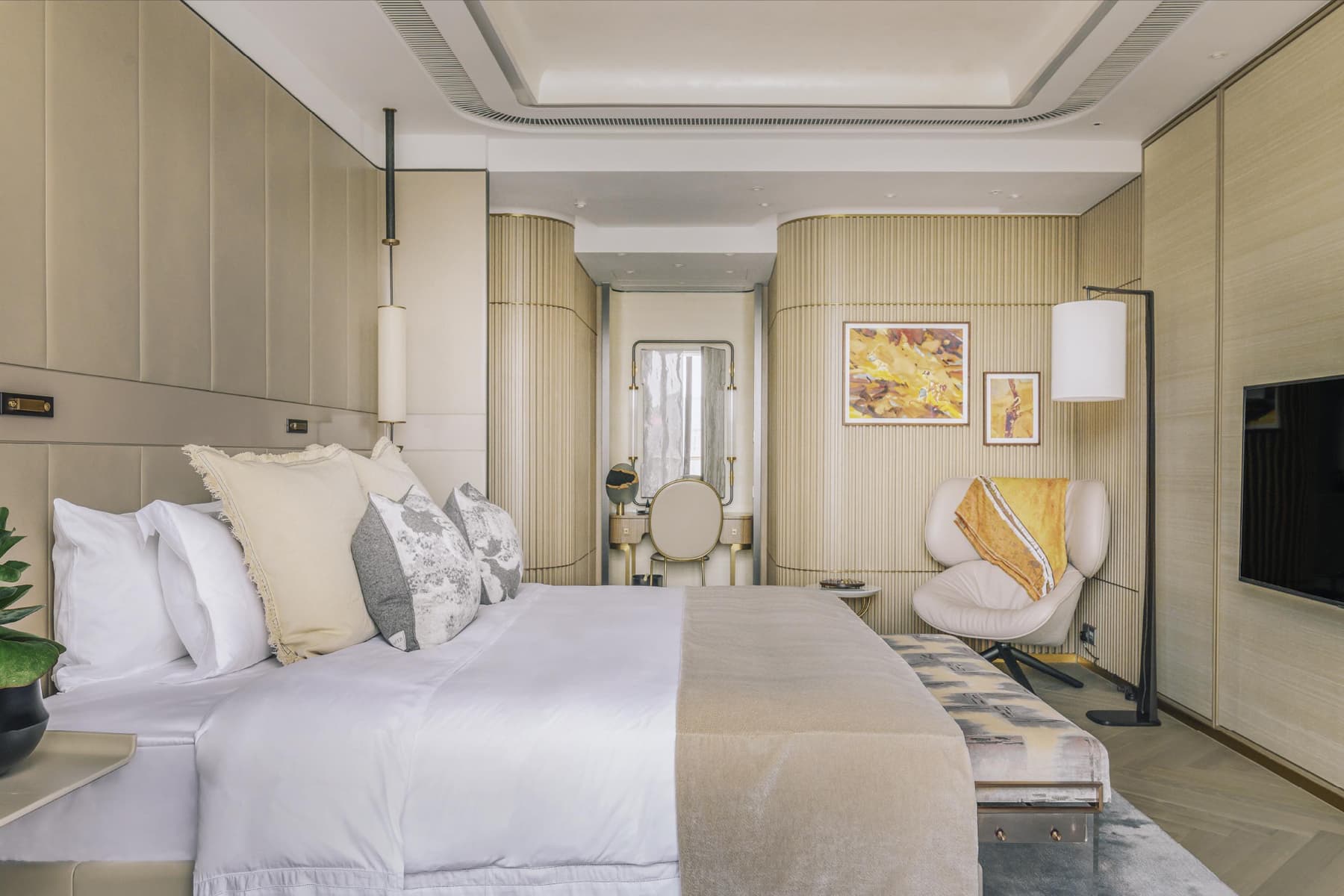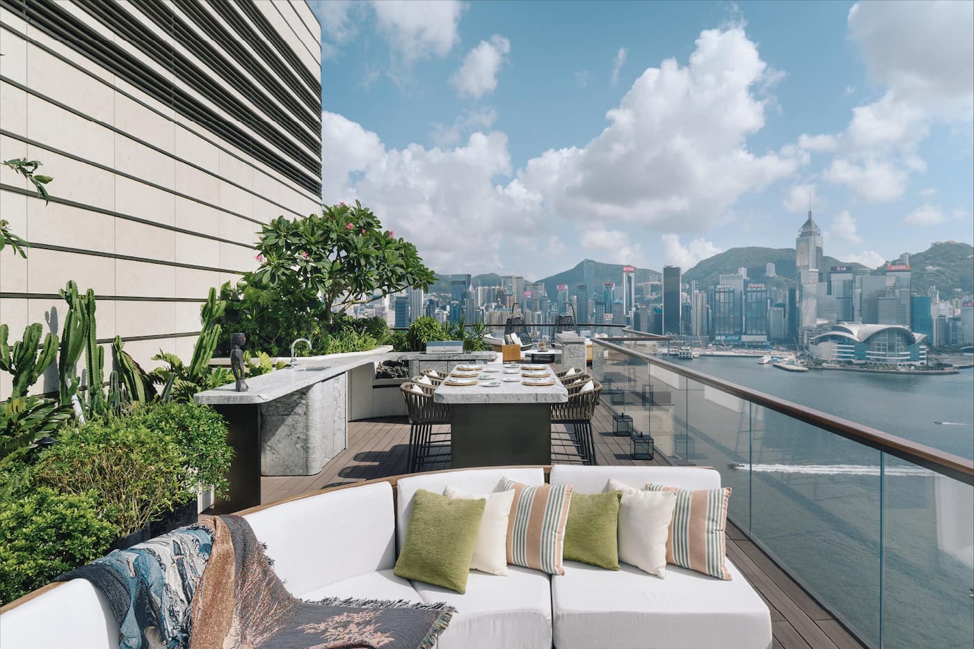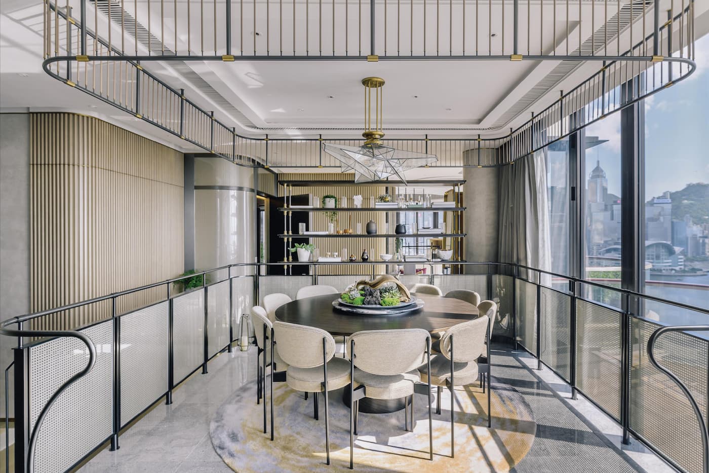One of the impressive 3,464 sq. ft Penthouses, created by renowned Hong Kong interior designer Joyce Wang, features bespoke finishes, luxurious materials and textures, and sophisticated custom furniture and art pieces which come together to create a curated sense of space.