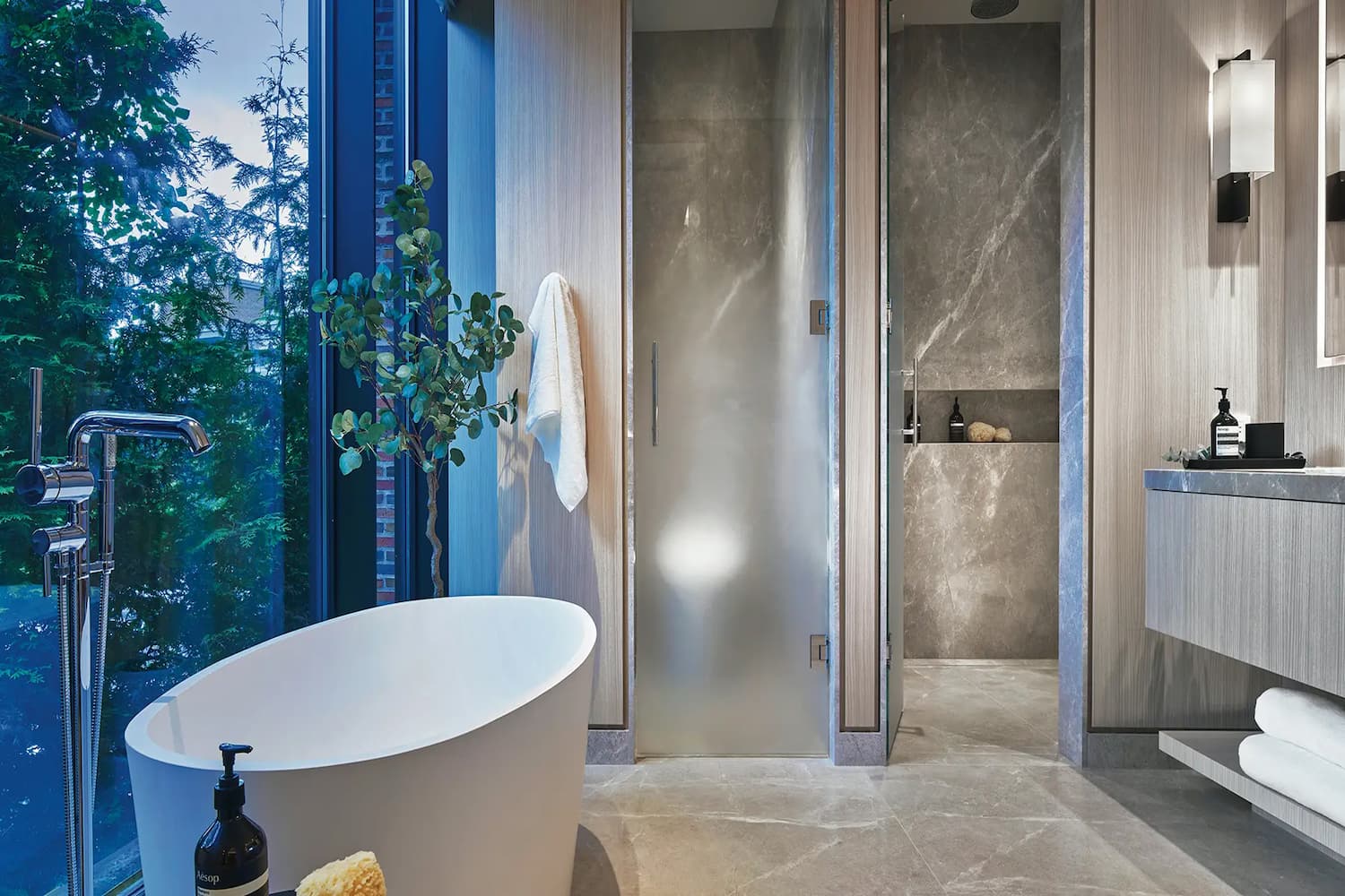 Rising four stories, No. 7 Rosedale offers 26 private residences, each ranging from 2,000 to 5,000 square feet. The design seamlessly blends modern and traditional elements, showcasing exquisite materials such as stone, glass, and Danish red brick. Our chic Soho bath, small yet perfectly formed, complements the warm and welcoming interior. The bath was thoughtfully created for contemporary urban spaces without compromising on comfort.
