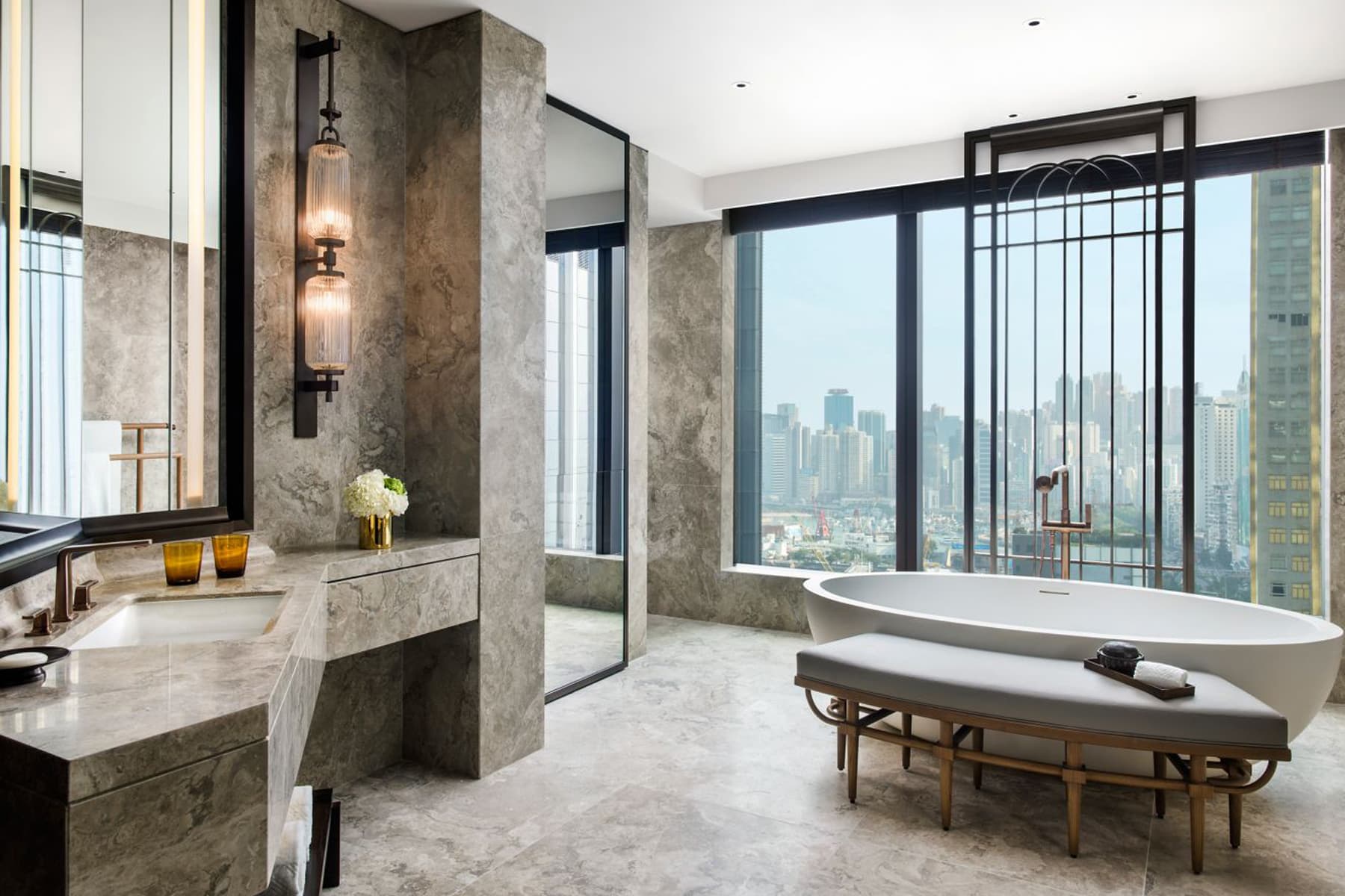 There are 112 rooms and 17 signature suites, each of the large guest rooms is opulent but comfortable and offers an oasis of calm from the hustle and bustle of Hong Kong. Our Skye baths in Dover White were selected to complement the Deluxe Rooms, offering guests the ultimate in relaxation.