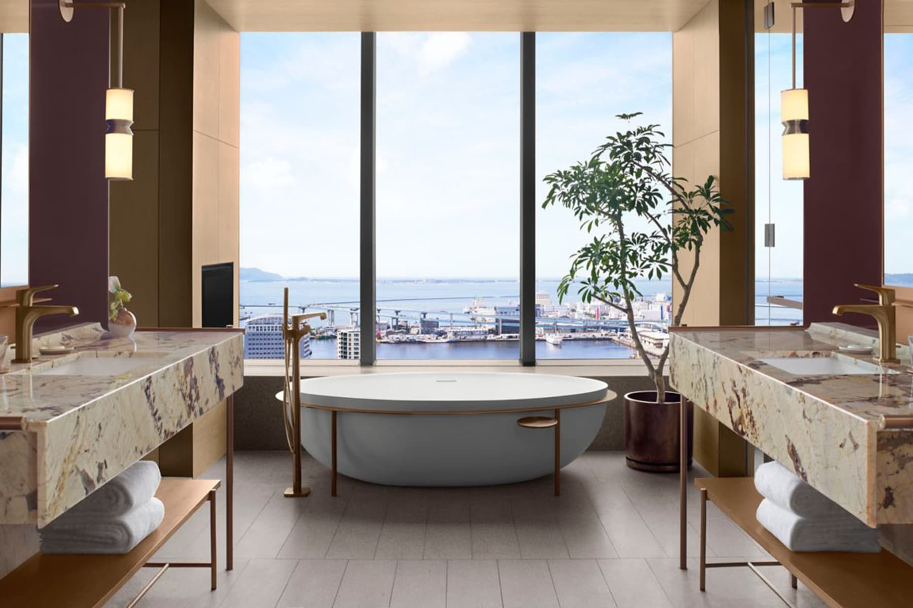 Fukuoka’s Daimyo Garden City commercial complex. This luxurious 25-storey hotel boasts 147 spacious rooms and 20 elegant suites, designed by Melbourne’s Layan Architects + Designers. Each room provides stunning views of the Genkai Sea, Hakata Bay, and the city skyline. The design pays tribute to Fukuoka’s rich cultural heritage, incorporating elements of hakata-ori—traditional silk weaving—alongside artisan sculptures and woven textiles for a distinctive visual appeal.