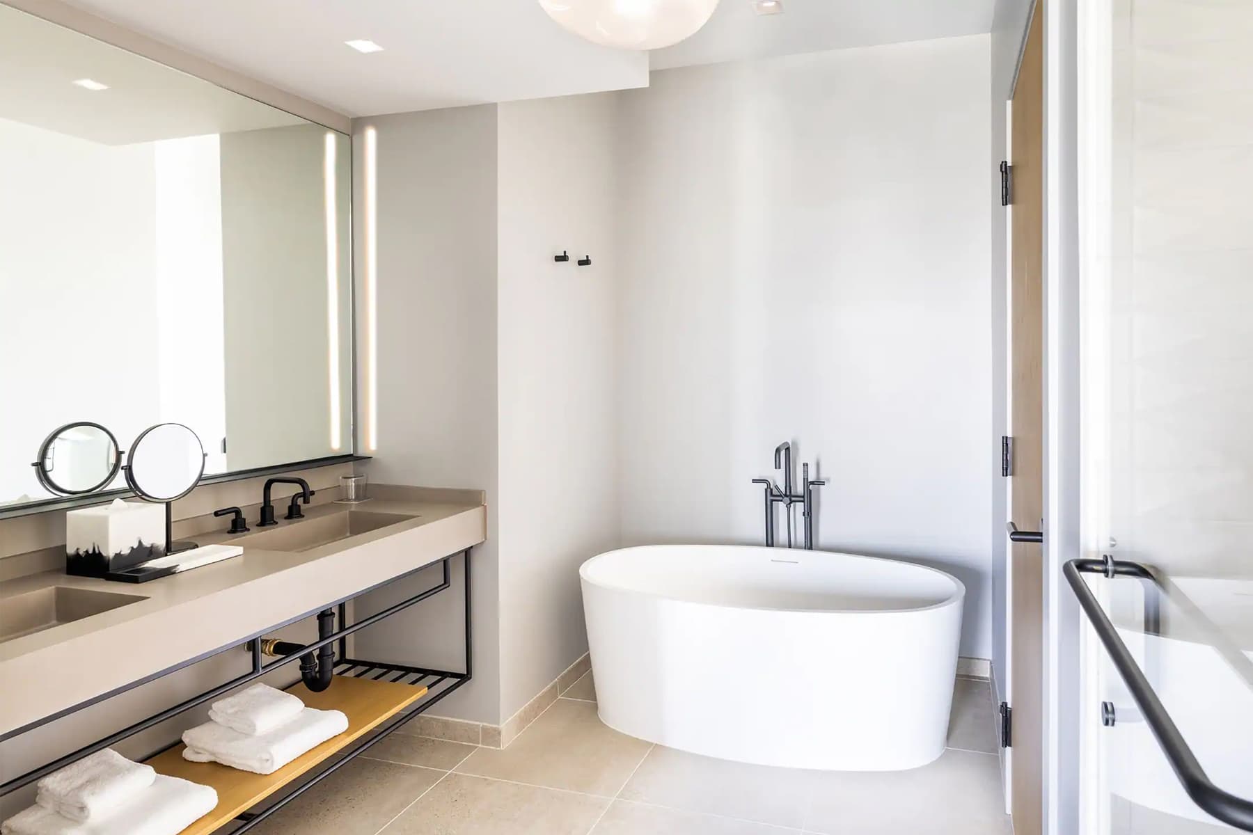 Our bathtub and bespoke vanity to The Shay Culver City brings a distinctive touch of sophistication to this modern hotel. Designed to reflect the vibrant spirit of the surrounding area, The Shay embodies a seamless blend of contemporary style and relaxed California charm.