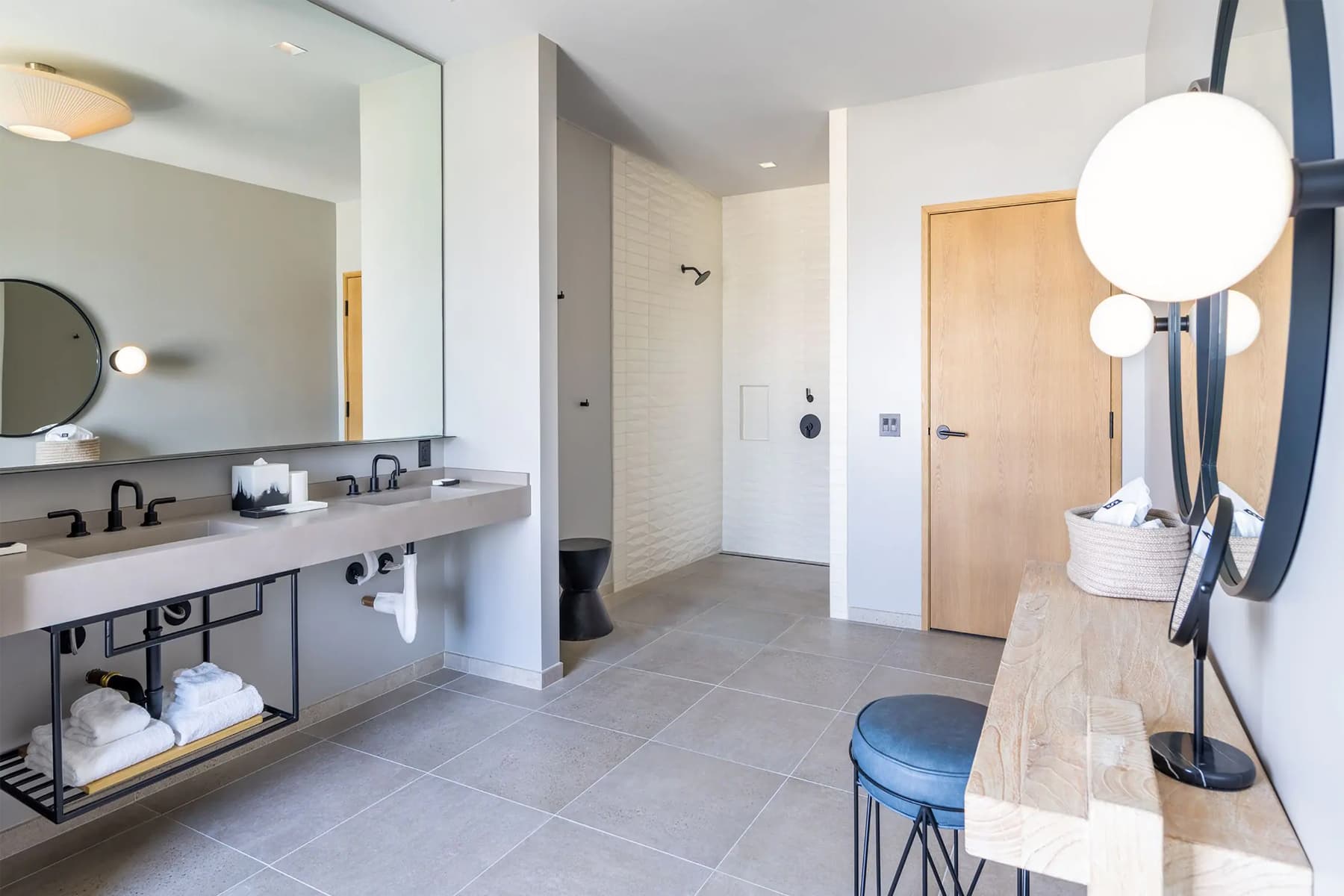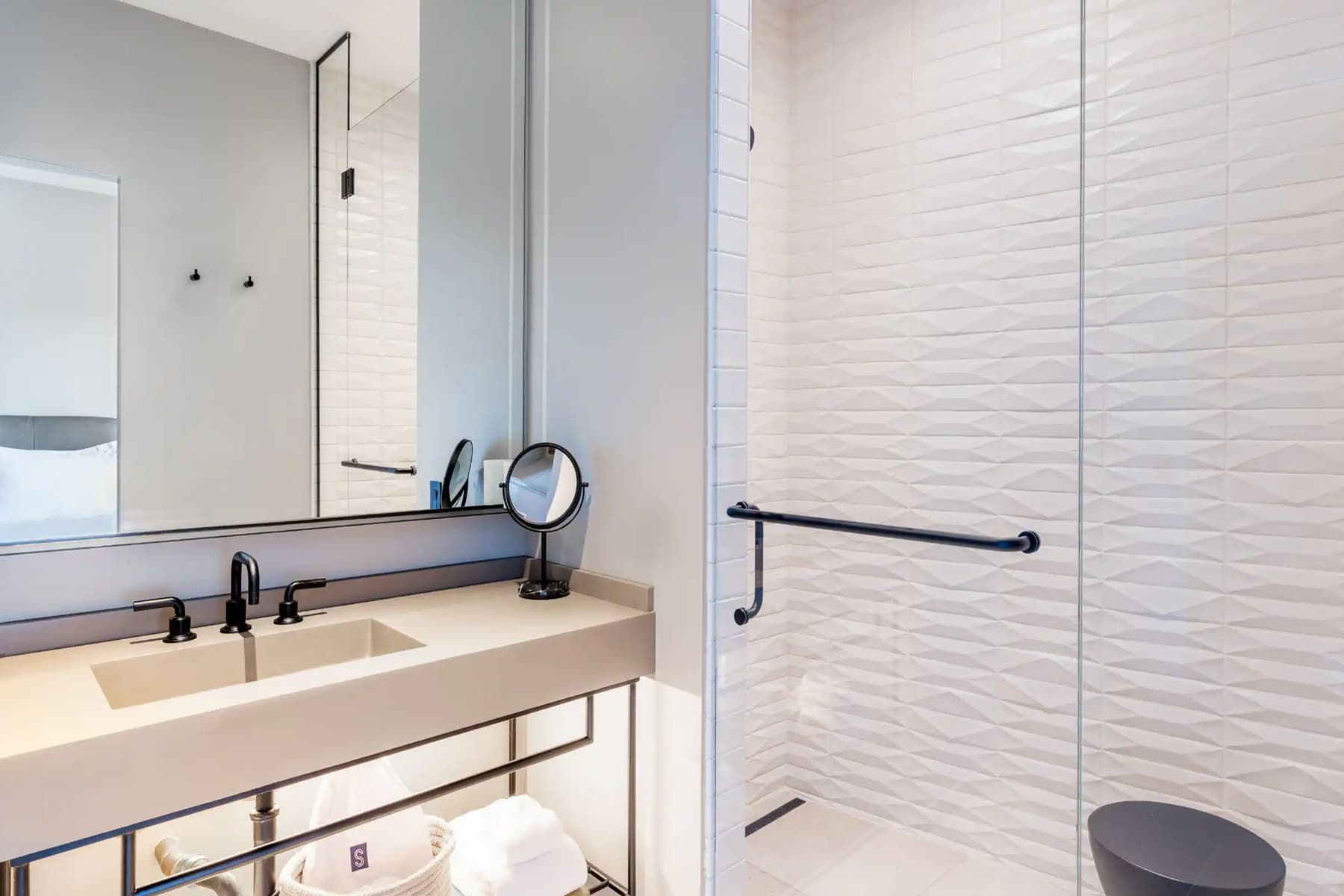 At The Shay, every element is curated to foster a unique experience, and our bathtub and vanity exemplify this commitment to excellence. Guests are encouraged to soak in the moment, embracing the blend of style and relaxation that defines their stay in Culver City.
