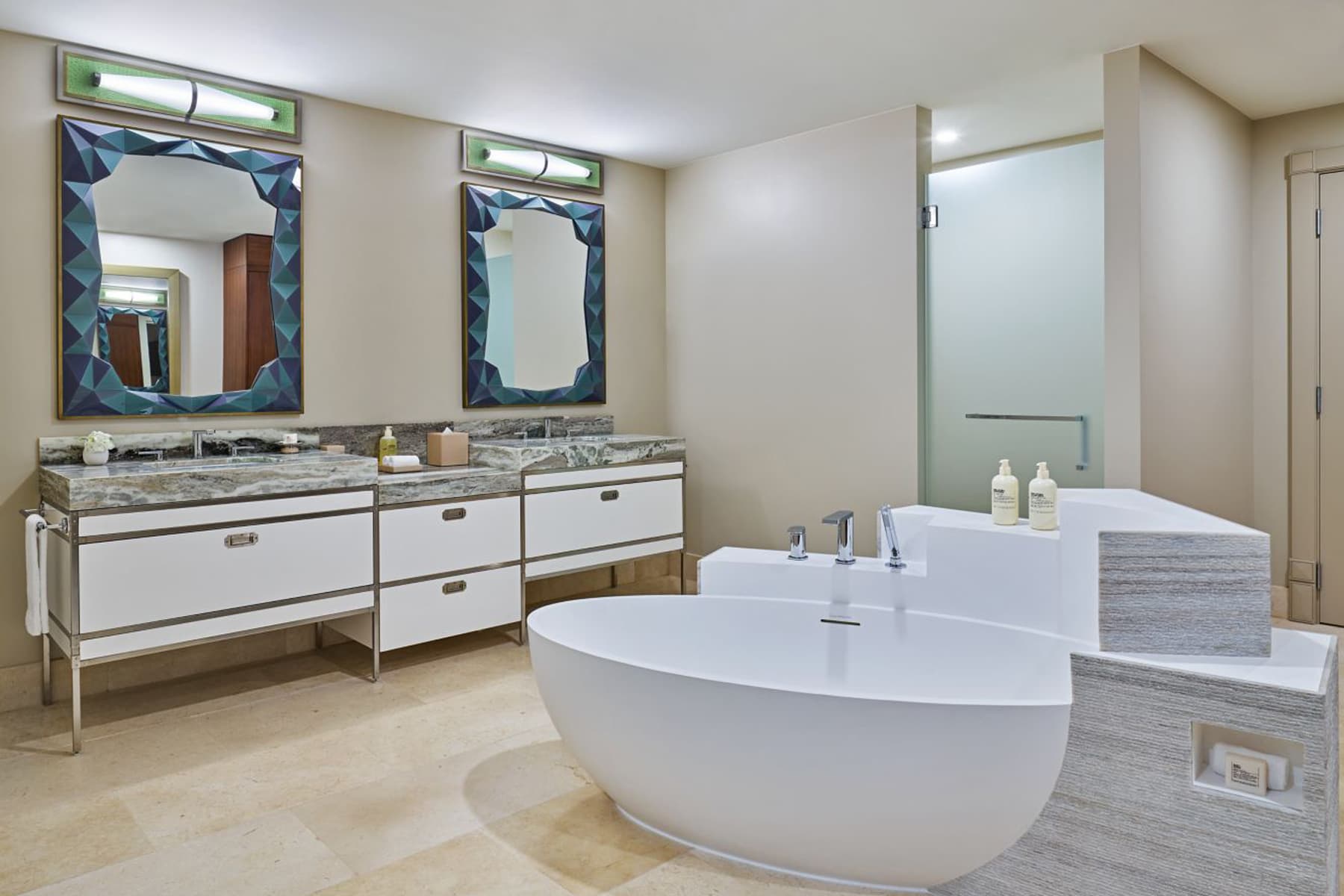 Claybrook bespoke MarbleForm™ baths with natural stone clad surrounds were placed center-stage in all the luxury bathrooms. Our artisans painstakingly cut and polished the stone to seamlessly inlay it in to the MarbleForm™ surround. The sculptural plinths creating an Island in the centre of the bathroom, and also house the tapware, guest amenities and towel hooks. The other challenge faced by our team was the creation of a modular design to facilitate shipping and simplify the installation process, and boy was the effort worth it!