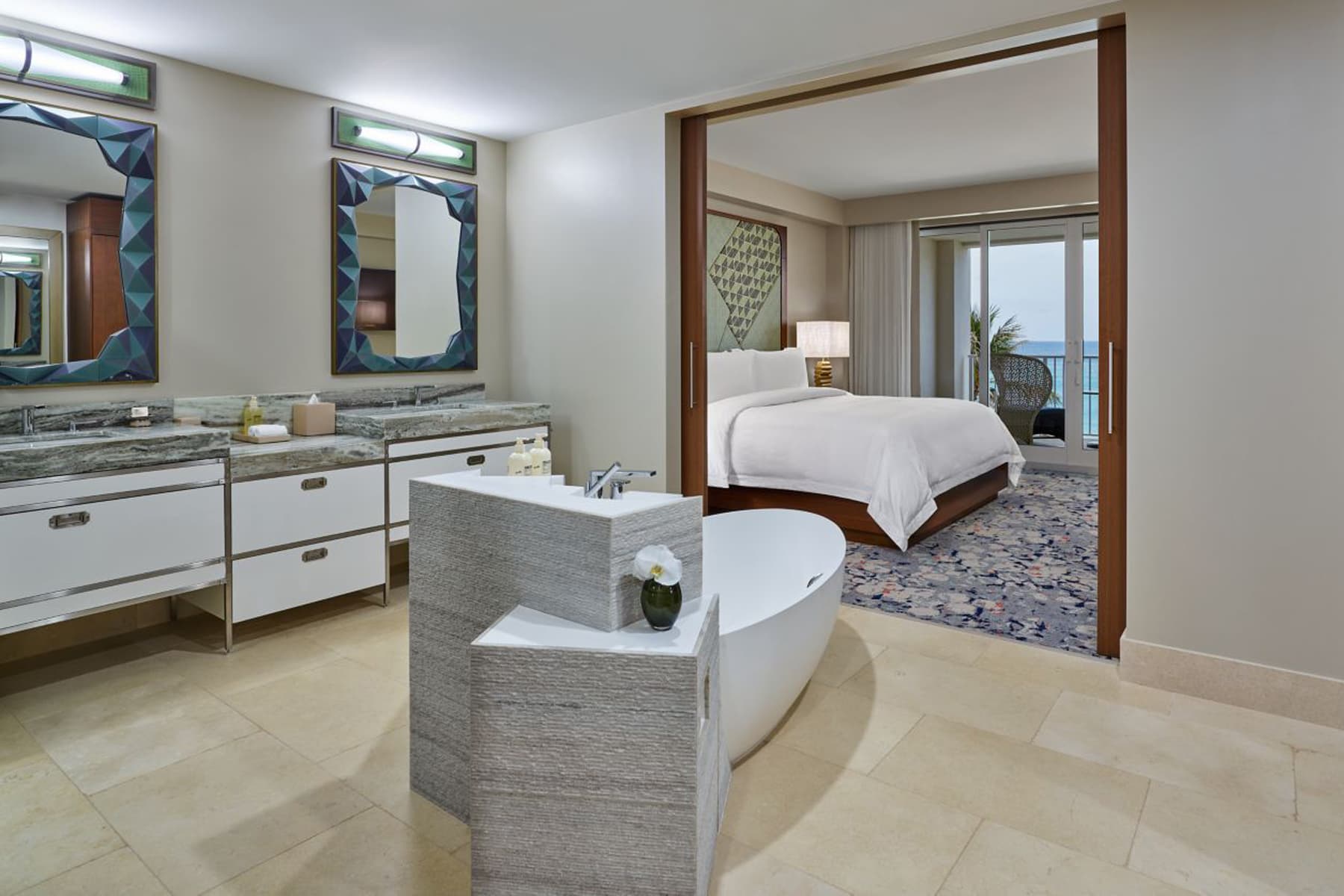 A haven of oceanfront elegance situated in the historic town of St. George. The St. Regis Bermuda Resort is mere steps away from the soft white sands of St. Catherine’s Beach. The property features 120 guestrooms and 21 suites, each with private balconies and stunning views, creating an iconic resort setting with lavishly appointed accommodation.