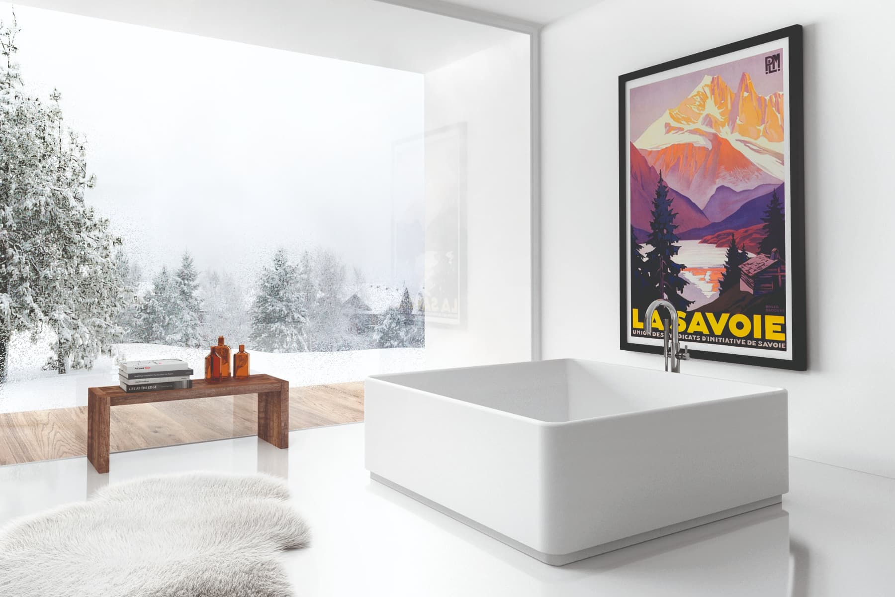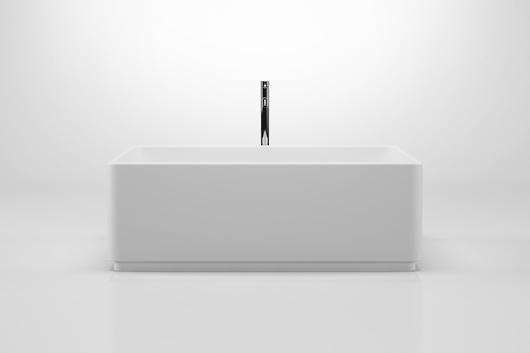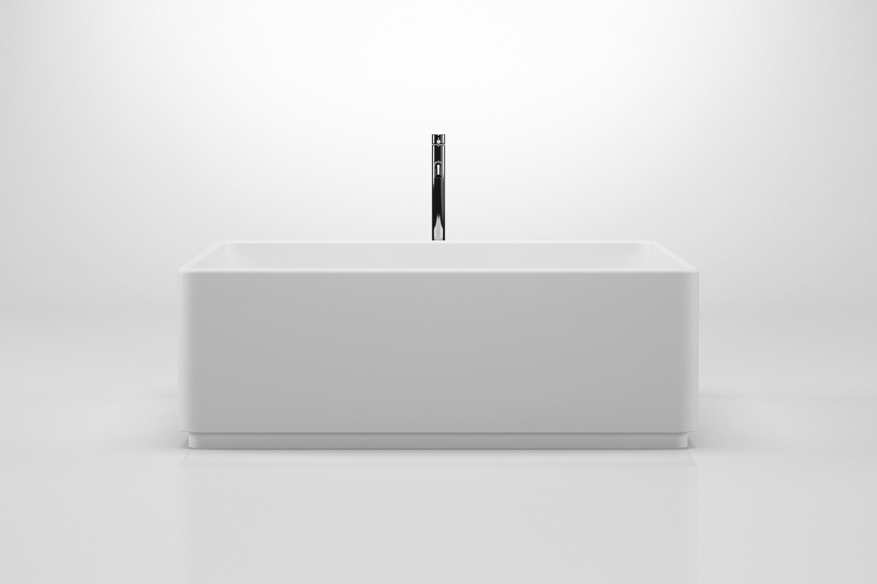 Seemingly floating above the ground on its inset foot, the Arca bath is a contemporary two-person soaking tub.
