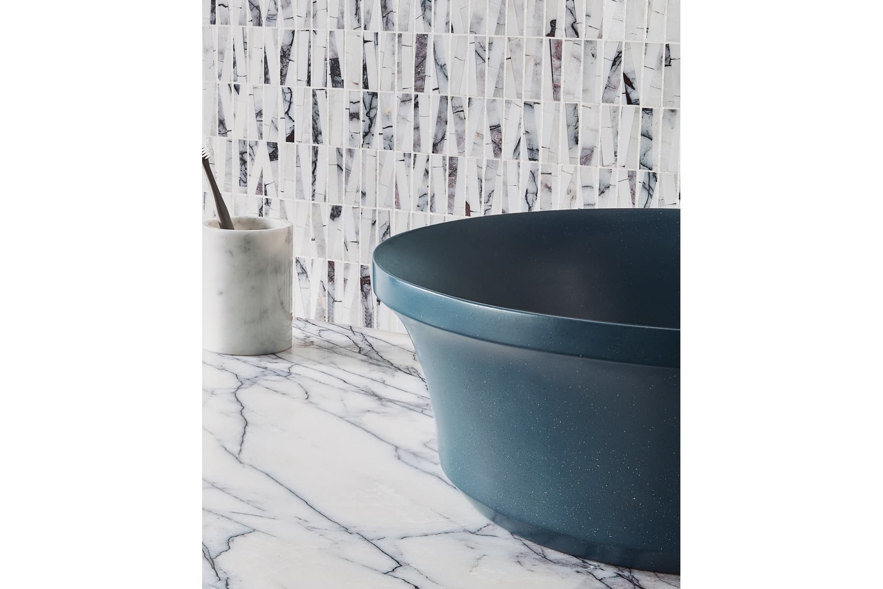 The Flute ensuite countertop basin is available in an oval or round option, providing flexibility depending on the layout of your bathroom, and available in our full range of MarbleForm™ colours.