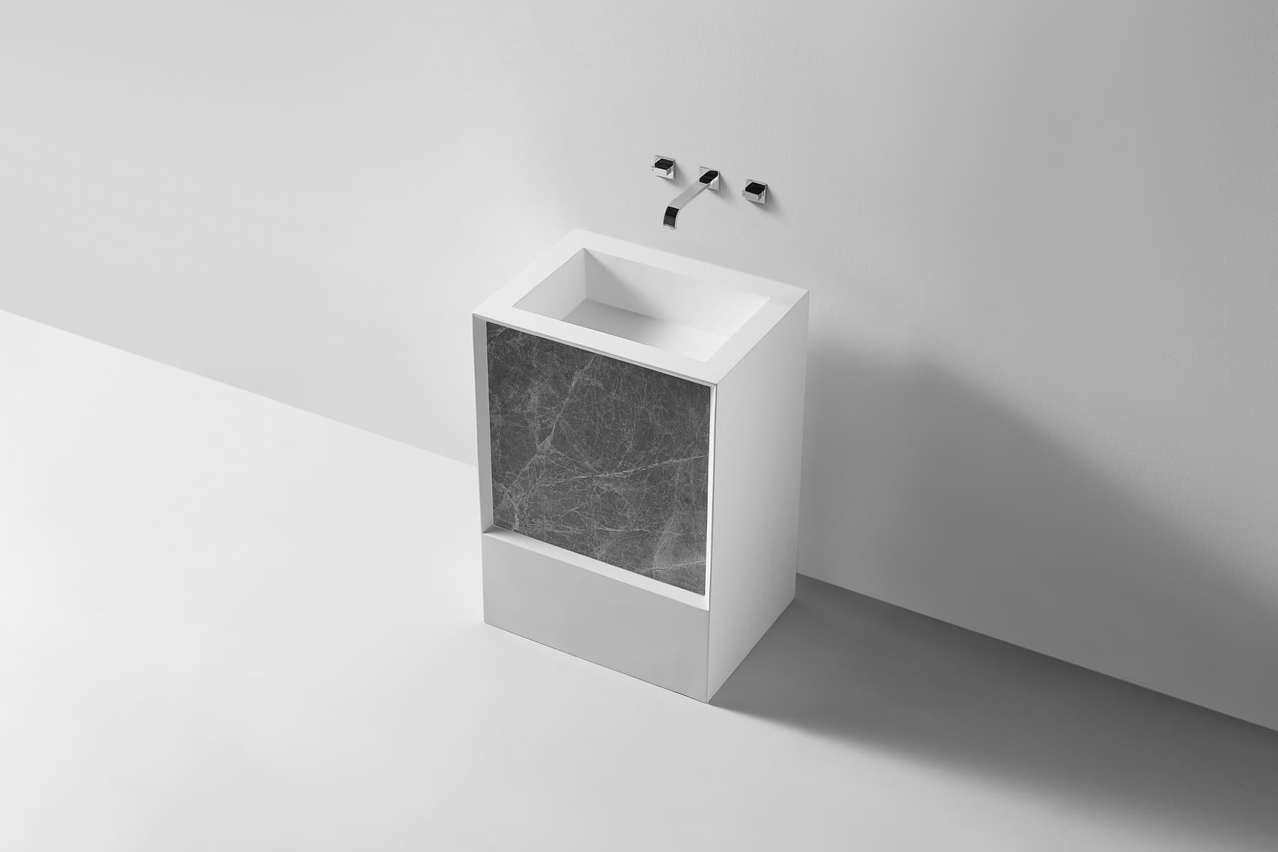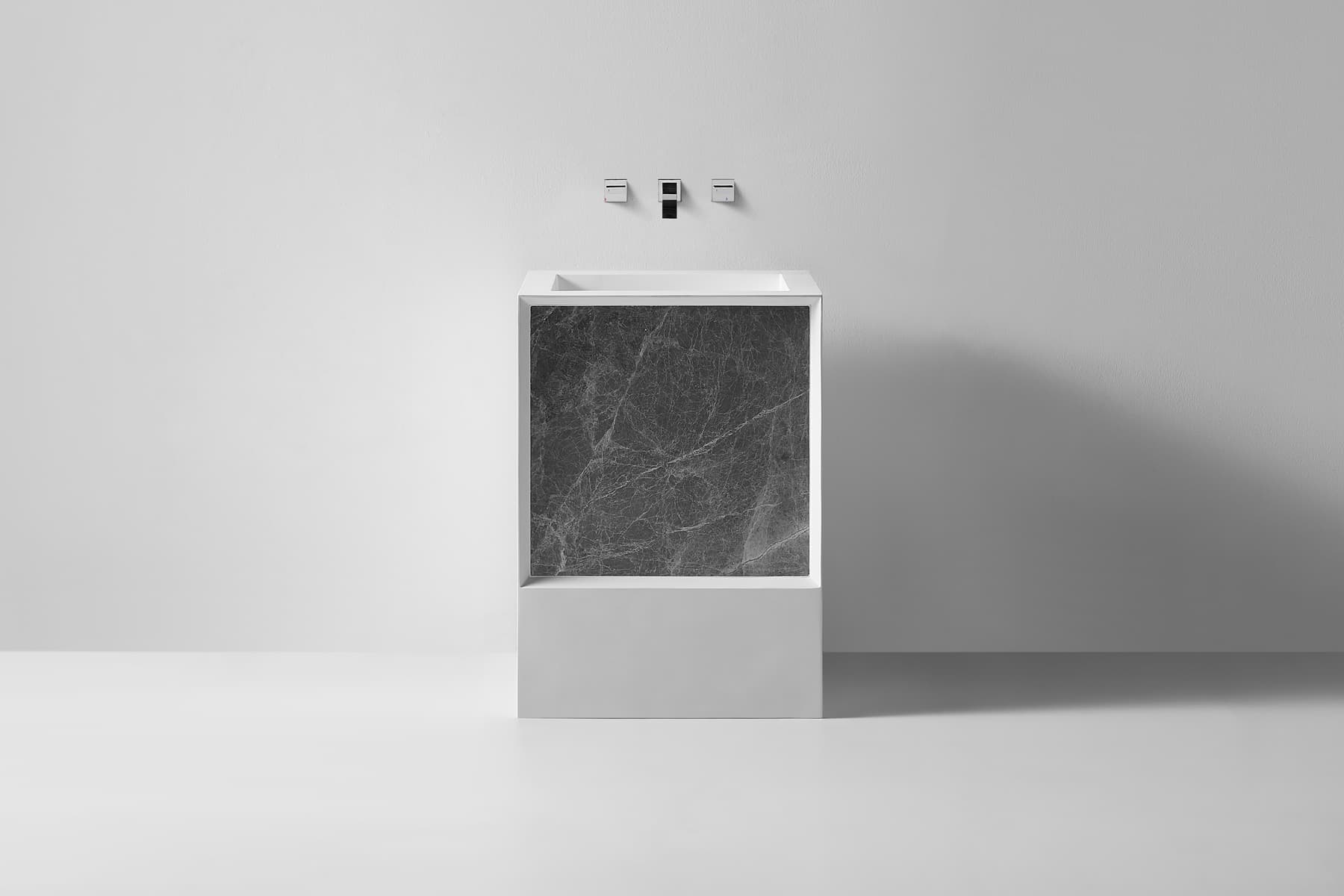 Designed by Meyer Davis for their eponymous homeware collection, William Gray, this vanity redefines tradition with a mix of reconstituted and natural stone. Contrasting sharp edges and an angular form with the soft beauty of organic stone.