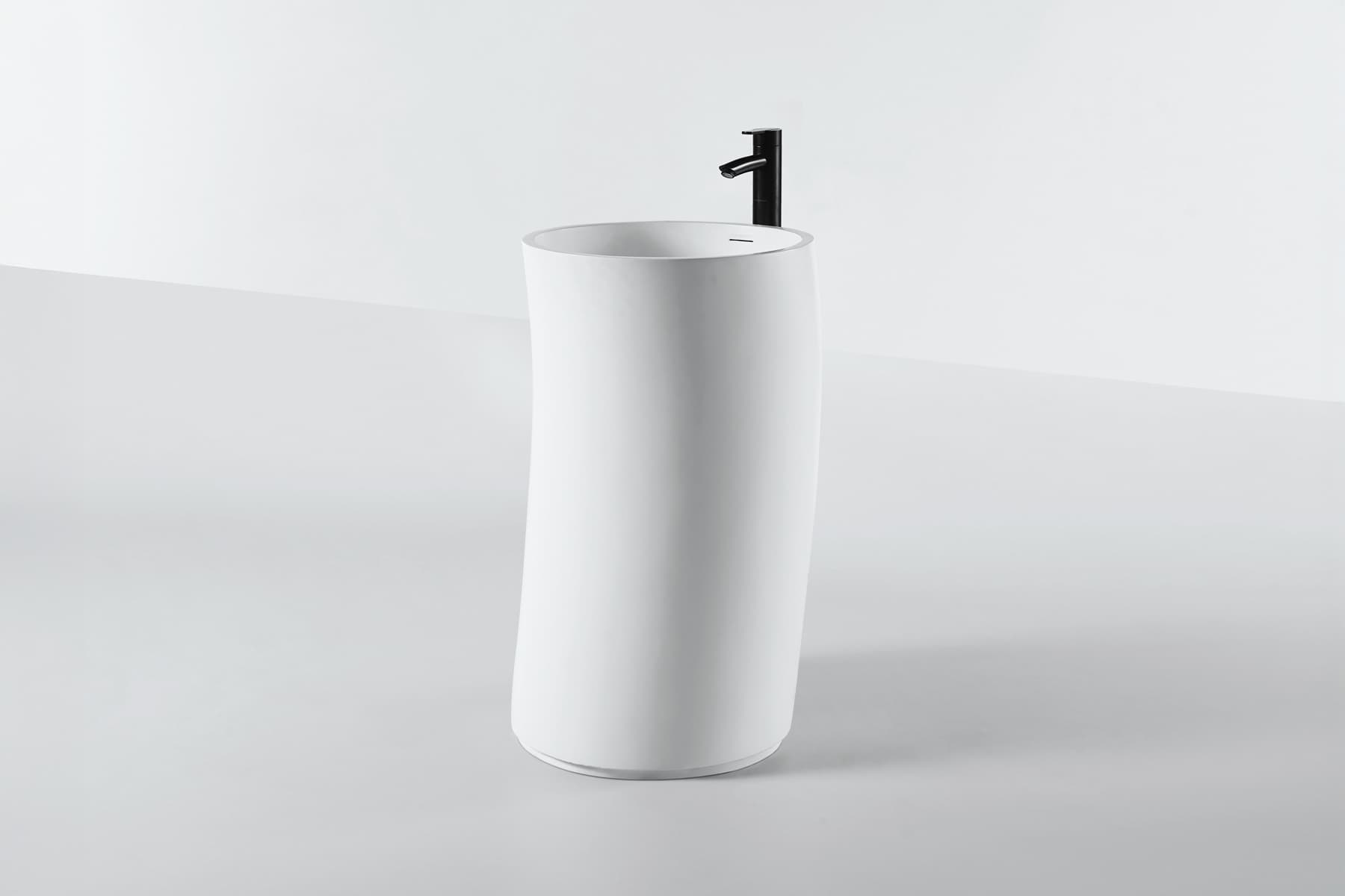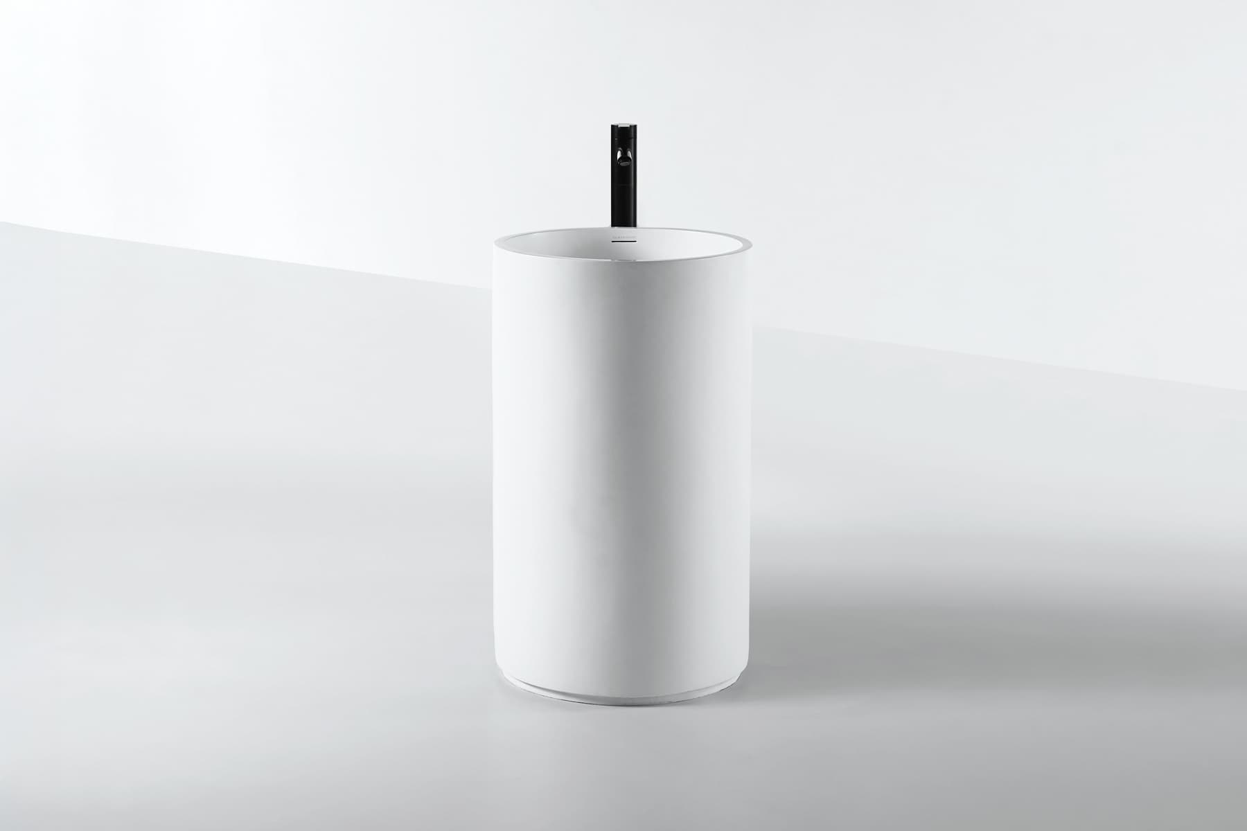 A playful approach to a classic cylindrical form with the basin curving towards the user.