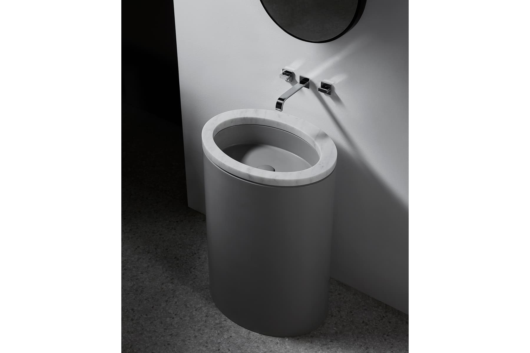 Designed by Meyer Davis for their eponymous homeware collection, William Gray, this contemporary design redefines luxury. Natural stone frames a deep soaking tub made from reconstituted stone creating a beautiful ledge.